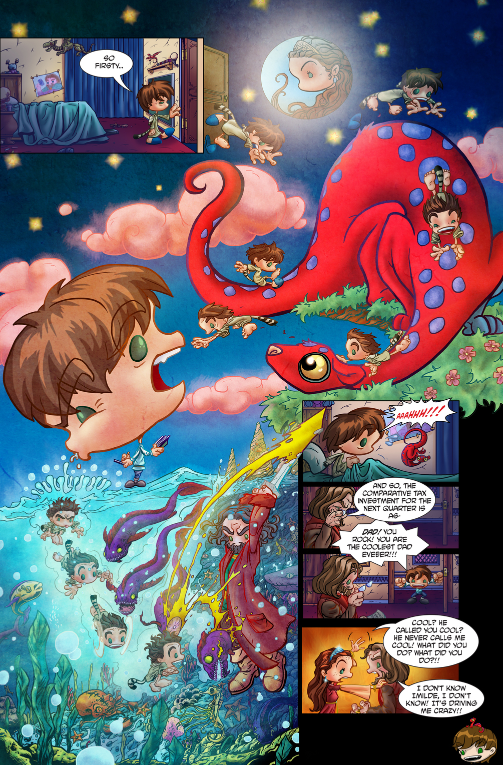 An all ages comic book focused on two brothers who live in a castle, and the younger's imaginary friend who gives the worst advice. A funny, heartwarming comic perfect for kids, young or old who will enjoy this tale of friends, family and the occasional out of control chain reaction of hilarious consequences for a prank gone bad.
